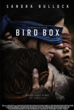 영화 버드 박스는 수잔 비에르 감독의 2018년 공포 스릴러 영화로 넷플릭스에서 개봉했다. 소설을 원작으로 한 영화로 산드라 블록이 주연을 맡아 맬러리역을 연기했다. 이 이야기의 배경은 포스트 아포칼립스의 세계를 보여준다. 그것은 어떠한 이유로 현존하는 인류 문명이 붕괴하고 난 뒤의 세계관 혹은 그러한 상황에서 벌어지는 이야기를 다룬 픽션을 통틀어 칭한다. 임신 중인 맬러리는 갑자기 무엇을 본 사람들이 이해할 수 없는 광기에 휩싸인 채 자살을 하는 장면을 목격하고 커뮤니티로 몸을 숨기게 된다. 하지만 생존자 커뮤니티에 있던 사람들도 알 수 없는 힘을 보는 순간 하나 둘 죽게 되고 맬러리는 그곳에서 아들을 낳는다. 그녀와 동시에 딸을 낳은 올림피아는 끝내 살아남지 못하게 되어 그녀의 딸도 맬러리가 맡게 된다. 마지막으로 남은 이들은 맬러리와 두 아이들 그리고 생존자 커뮤니티에서 만나서 사랑을 시작하게 된 톰이다. 이 영화는 세상이 망한 5년 전과 현재를 교차로 보여주면서 이야기를 이끌어 나가고 있다. 현재 외부와 단절한 채 맬러리와 톰, 두 아이들은 은신처에서 생활을 하며 생존하고 있다. 그러던 어느 날 무전으로 릭이라는 사람이 강 아래에 공동체로 모여 사는 안전한 곳이 있으니 그곳으로 오라고 한다. 처음에는 믿지 않았지만 톰마저 죽고 은신처도 안전하지 않다는 결론을 내린 그녀는 떠날 결심을 하게 된다. 맬러리는 두 아이와 함께 살아남기 위해 은신처를 나와 눈가리개를 하고 강을 내려가는 위험한 여행을 떠난다. 그들은 시각을 포기해야 했기에 다른 감각에 의존해 보트를 타고 강을 내려가며 여러 가지 위험한 상황을 모면하여 끝내는 안전한 목적지에 다다를 수 있게 된다.