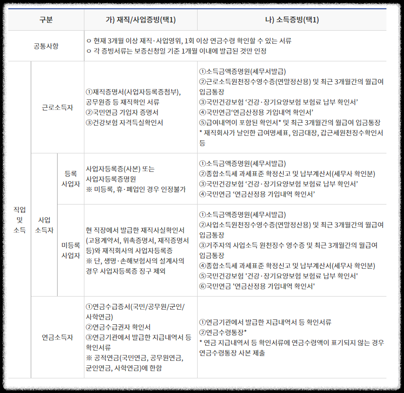 공통서류는 모두 준비해야 하며 근로소득자, 사업소득자, 연금소득자에 해당하는 서류를 준비하시면 됩니다.